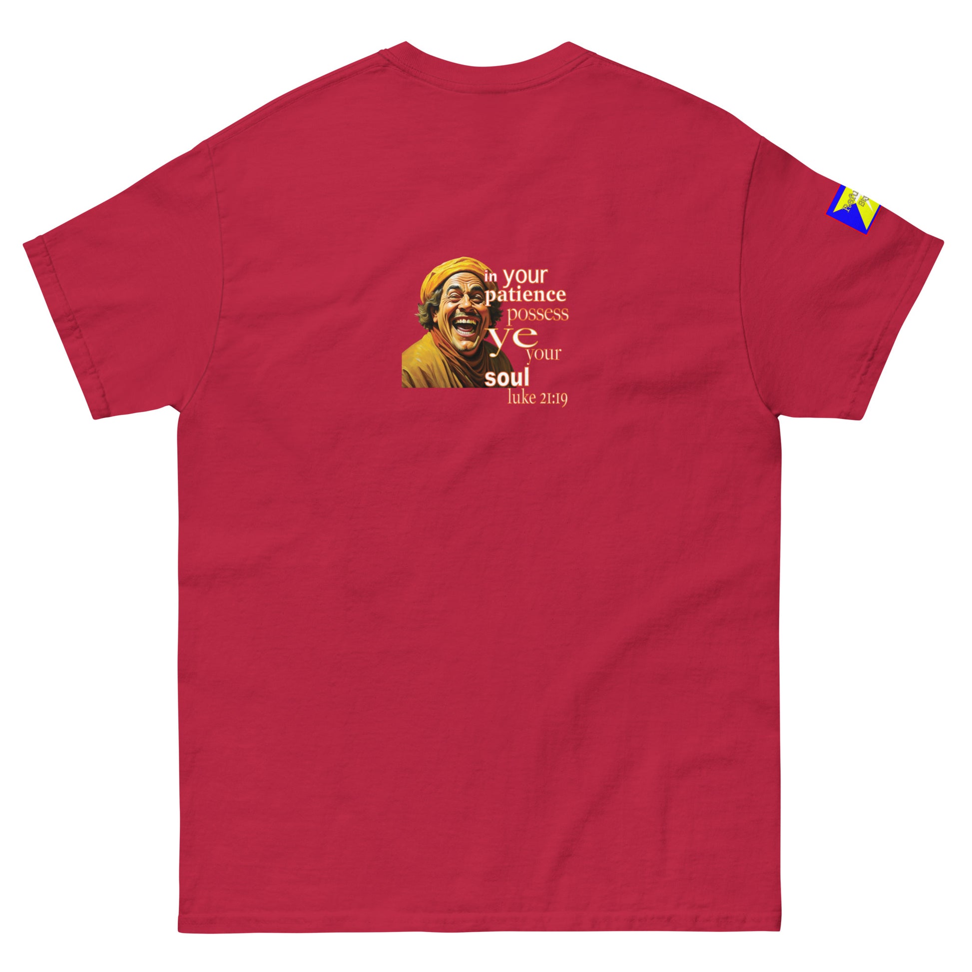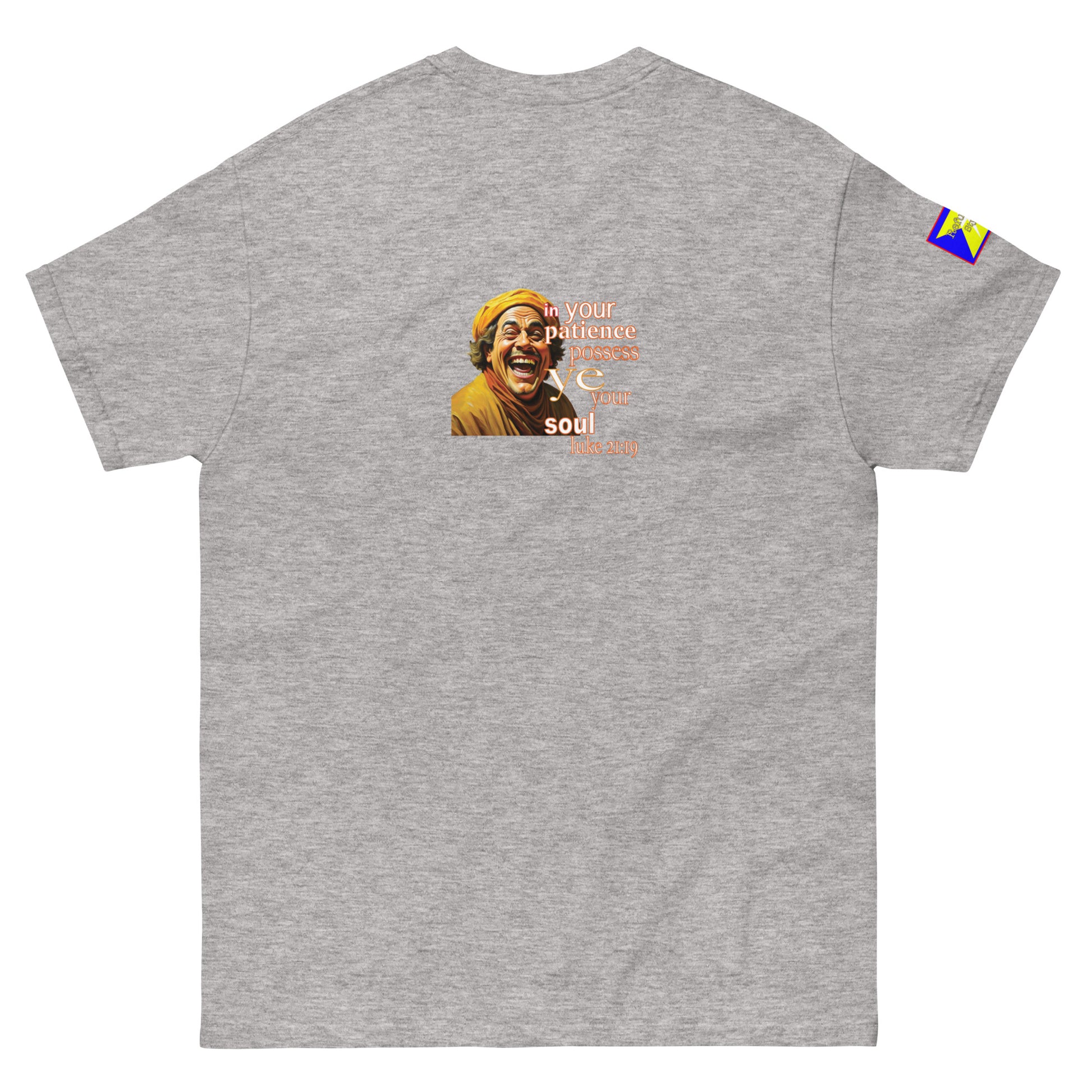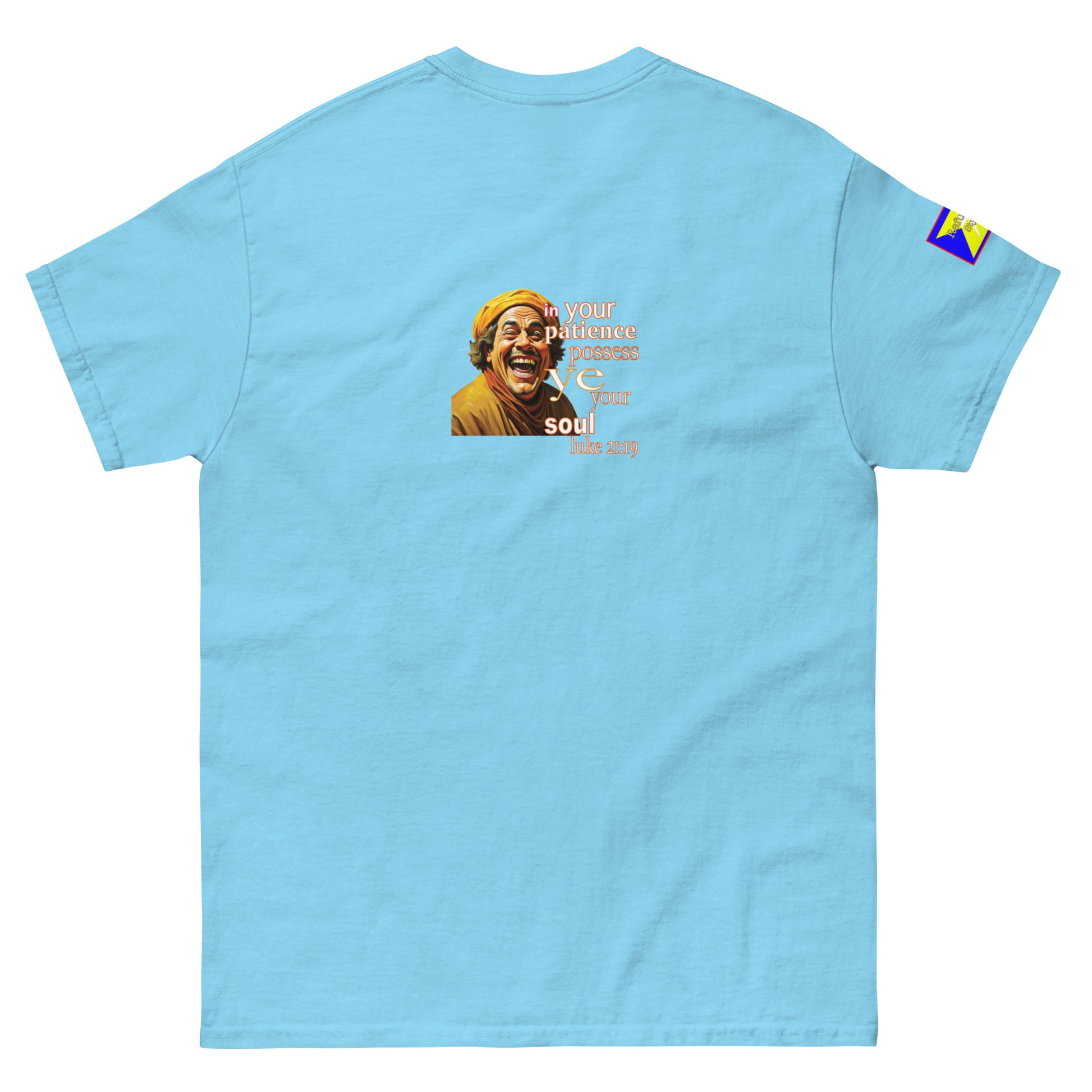 * 100% cotton unisex classic T, sits nicely, maintains sharp lines around the edges