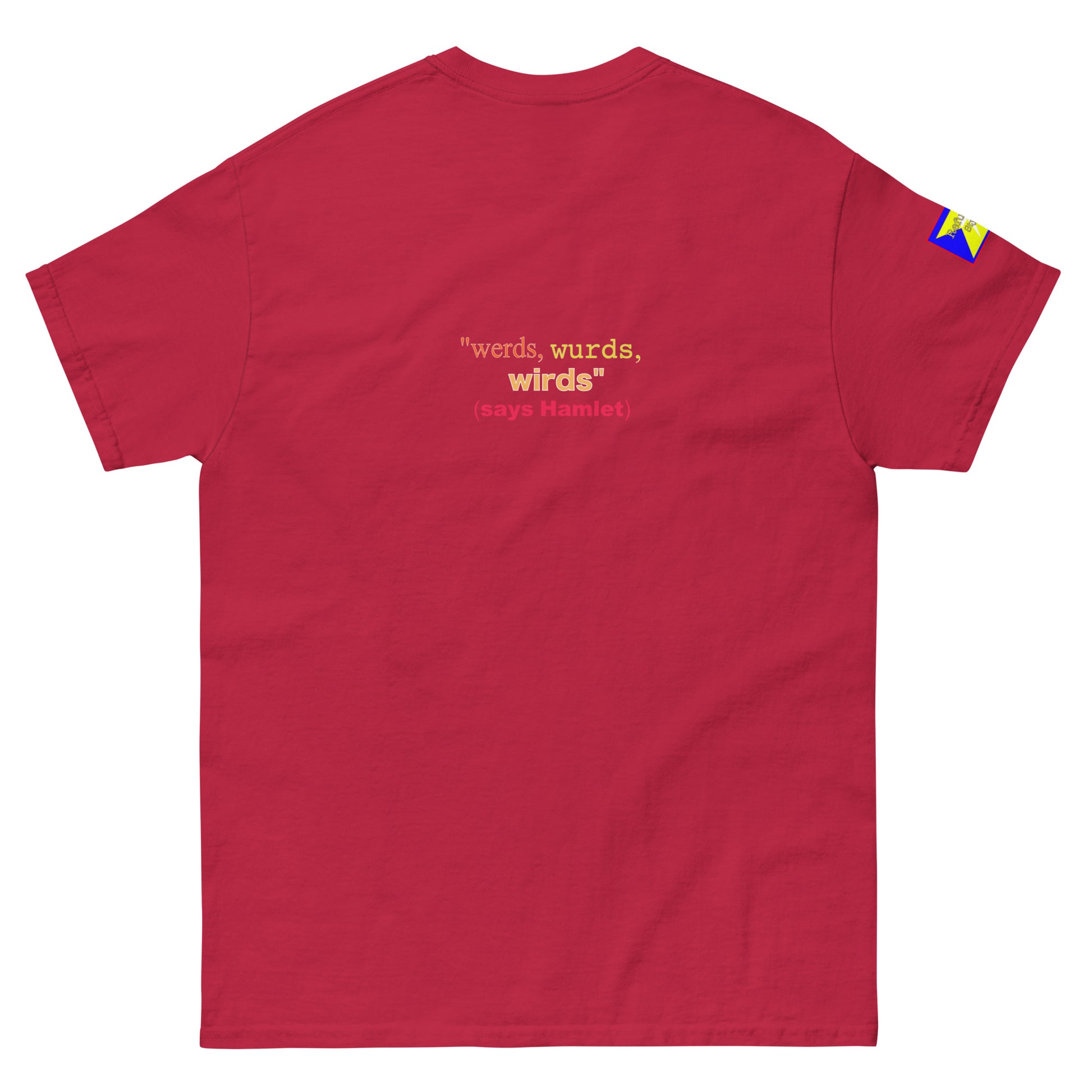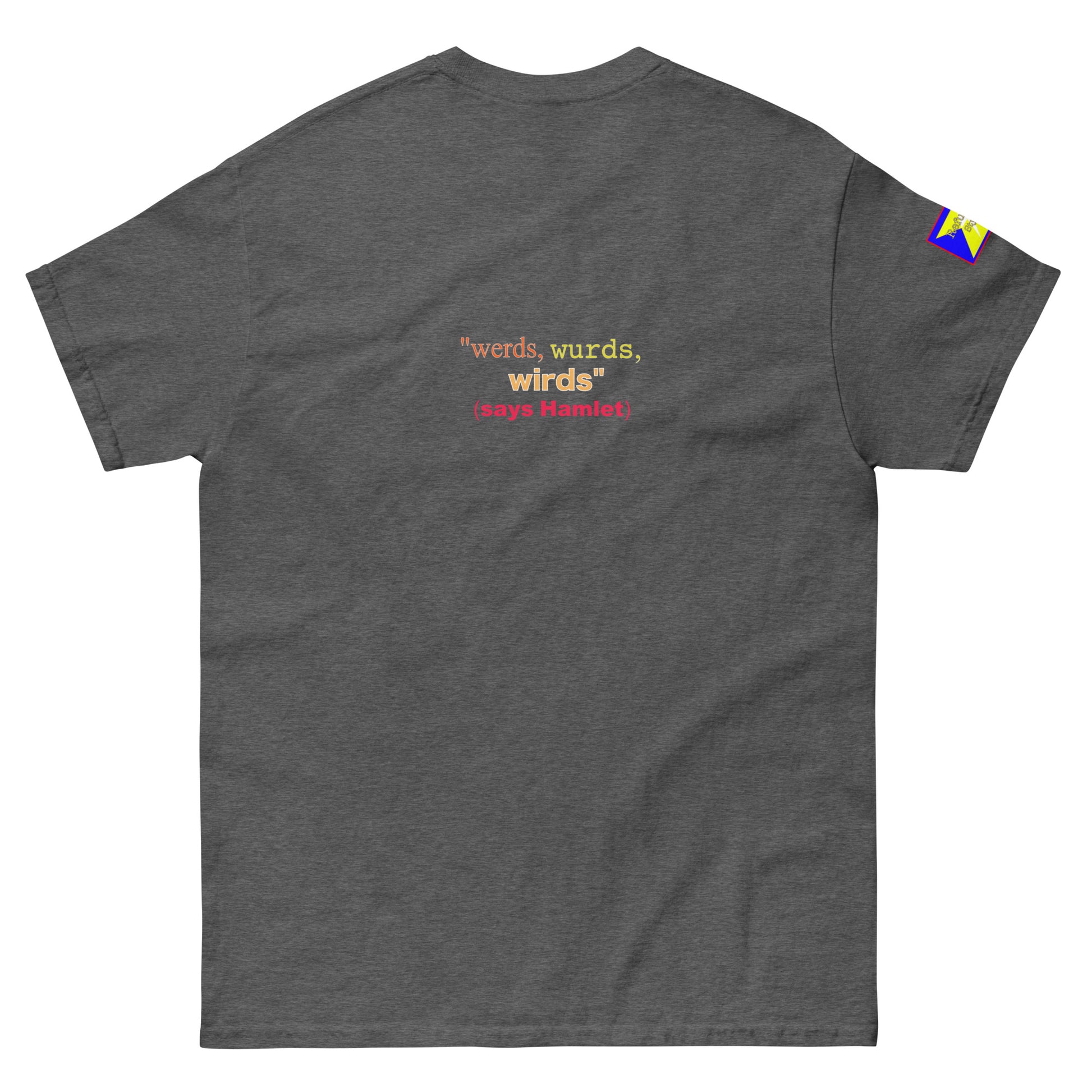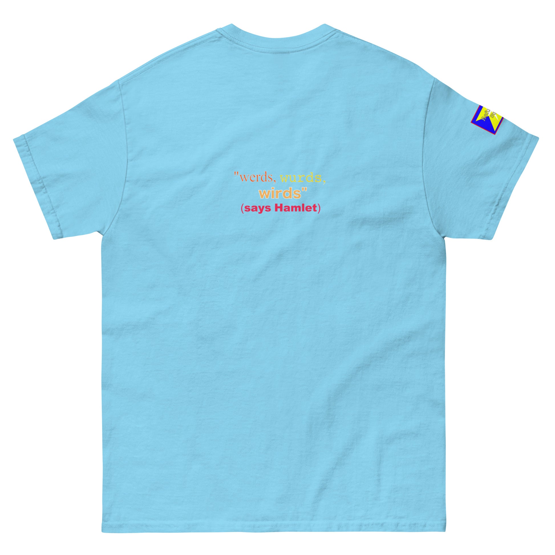 On a shirt about a master of words, an aide memoire - that words are only sounds we represent with shapes - seems a reasonable thing.